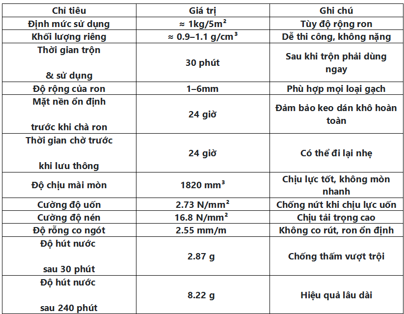 Theo hướng dẫn của Hiệp hội Xây dựng Việt Nam, keo chà ron bền màu chống ố như BRICON đáp ứng tiêu chuẩn chống thấm cao. Sản phẩm không chứa hóa chất độc hại, an toàn cho sức khỏe gia đình.